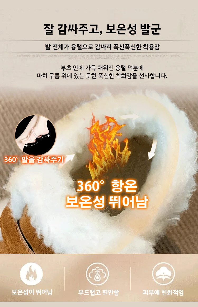 영하 30도 착용 가능 털가죽 일체형 스노우 부츠